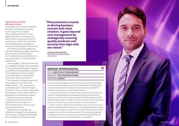 team to become as the World wards , and CIPS r the Young Talent t Leaders . ce across various nt expert , product ial transformation ive background f business and tion . www . stc . com . kw 7