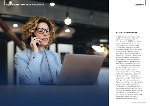 In 2026, the outsourcing landscape has fundamentally shifted. The“ AI hype cycle” of 2025 has settled into a pragmatic“ human-in-theloop” reality, where technology is a standard requirement rather than a silver bullet. For mid-market organisations, the era of relying on massive, volume-driven BPOs(“ Goliaths”) is ending. These legacy providers, trapped in headcountbased models and rigid contracts, struggle to deliver the agility and specialised talent required today.