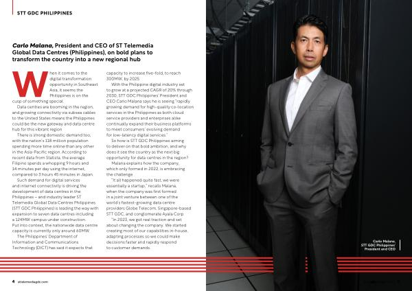 Carlo Malana , President and CEO of ST Telemedia Global Data Centres ( Philippines ), on bold plans to transform the country into a new regional hub