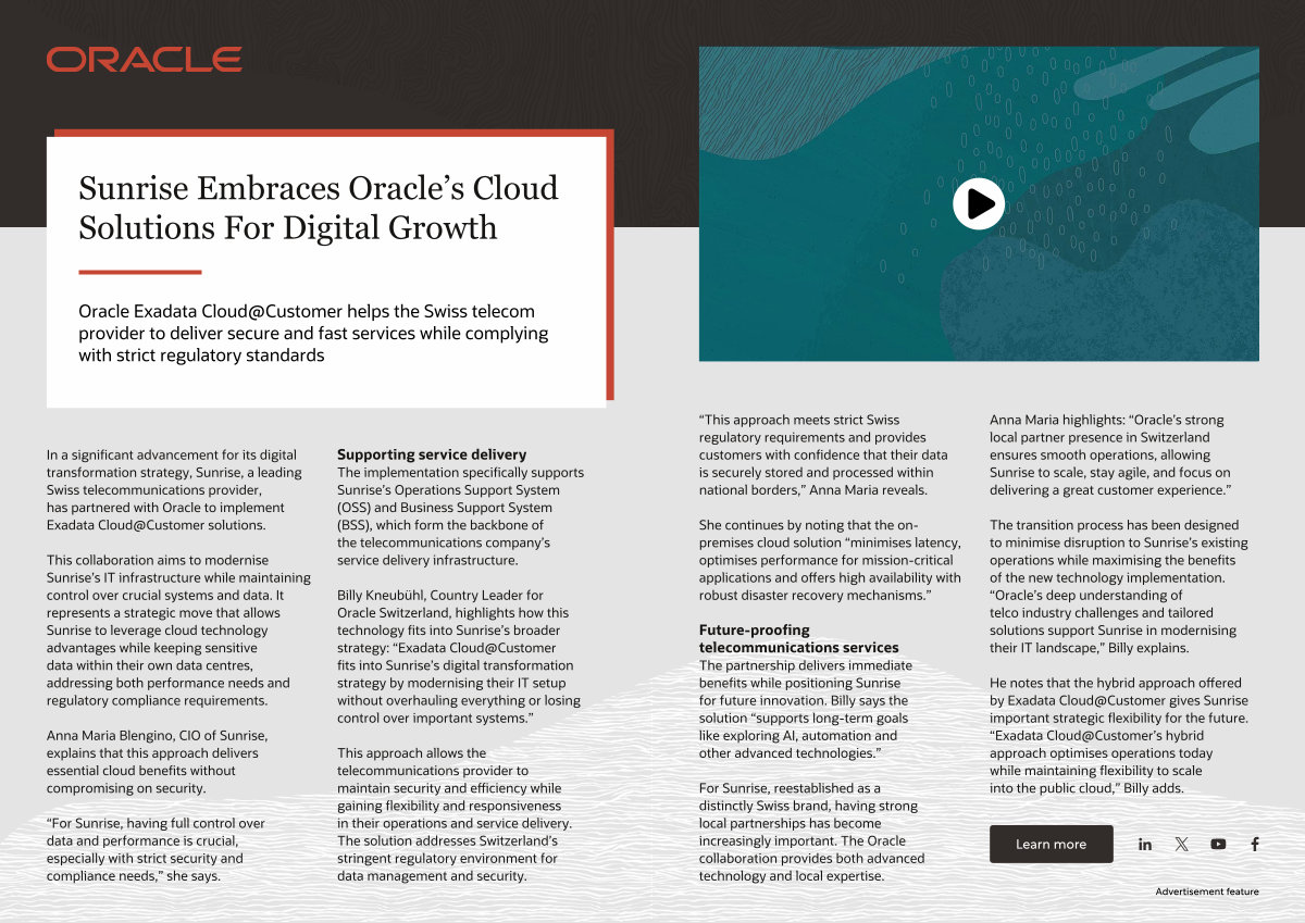 Anna Maria highlights:“ Oracle’ s strong local partner presence in Switzerland ensures smooth operations, allowing Sunrise to scale, stay agile, and focus on delivering a great customer experience.”