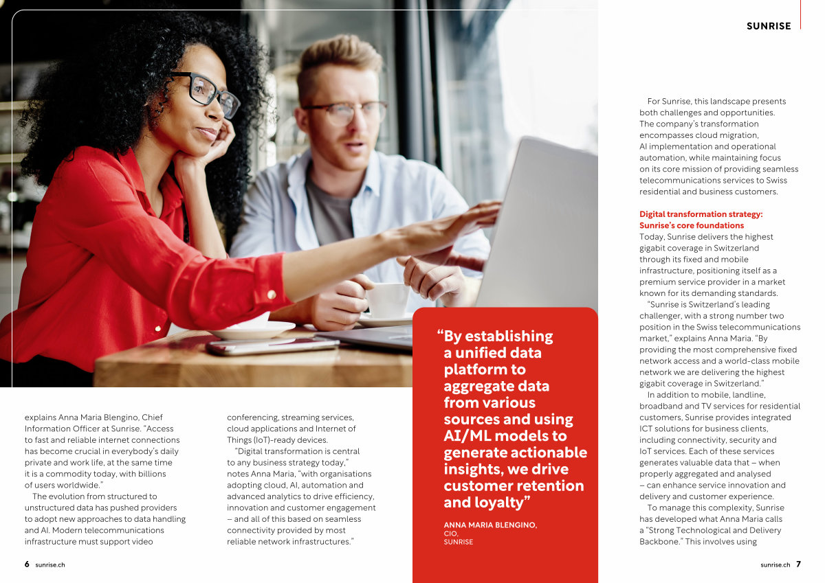 explains Anna Maria Blengino, Chief Information Officer at Sunrise.“ Access to fast and reliable internet connections has become crucial in everybody’ s daily private and work life, at the same time it is a commodity today, with billions of users worldwide.”