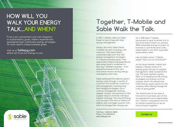 The Sable Power & Gas team is honored to have been part of this accomplishment and congratulates the T-Mobile sustainability team for its industry leadership as we all move forward together .