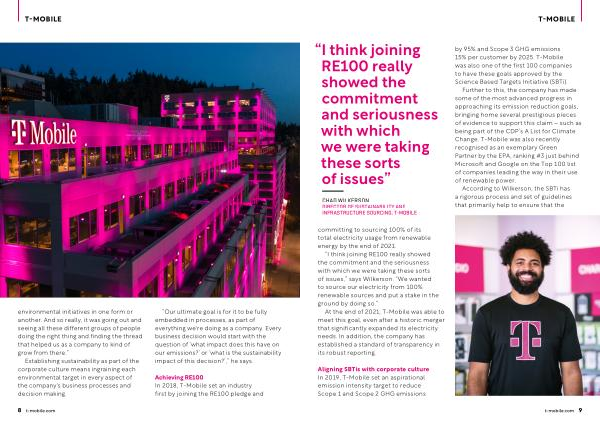 Achieving RE100 In 2018 , T-Mobile set an industry first by joining the RE100 pledge and