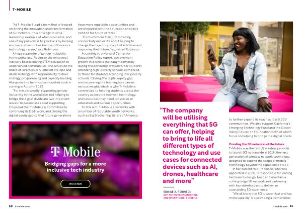 EDWIGE A . ROBINSON SVP NETWORK ENGINEERING AND OPERATIONS , T-MOBILE to further expand its reach across 5,000 communities . We also support California β s Emerging Technology Fund and the Silicon Valley Education Foundation both of which focus on helping to bridge the digital divide .