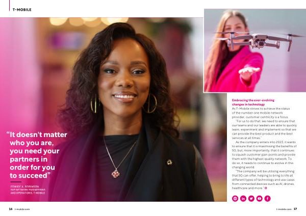 “ The company will be utilising everything that 5G can offer , helping to bring to life all different types of technology and use cases from connected devices such as AI , drones , healthcare and more .” t-mobile . com 17