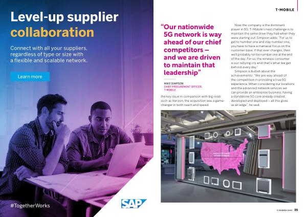 Simpson is bullish about the achievements : “ We are way ahead of the competition in providing a true 5G experience . When considering our locations and the advanced network services we can provide an enterprise business , having a standalone 5G core already created , developed and deployed – all this gives us an edge ”, he said . t-mobile . com 35