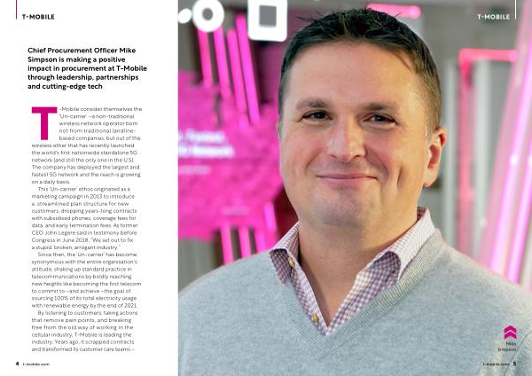 Chief Procurement Officer Mike Simpson is making a positive impact in procurement at T-Mobile through leadership , partnerships and cutting-edge tech