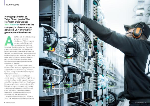 Managing Director of Taiga Cloud ( part of The Northern Data Group ) Karl Havard showcases the company ’ s clean-energypowered CSP offering for generative AI businesses