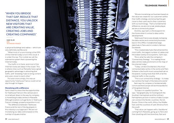 Monetising with a difference Sami is keen to stress that the opportunities for Telehouse France in this venture are in no small part down to the way his company is monetising its data centres in Marseille . Although location is a huge factor in Telehouse France ’ s strategy , property acquisition is not .