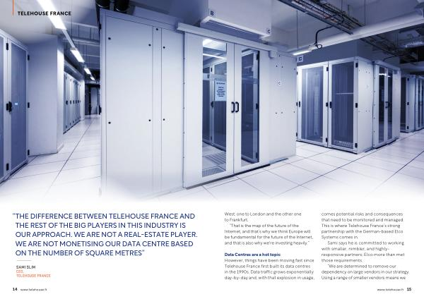 “ THE DIFFERENCE BETWEEN TELEHOUSE FRANCE AND THE REST OF THE BIG PLAYERS IN THIS INDUSTRY IS OUR APPROACH . WE ARE NOT A REAL-ESTATE PLAYER . WE ARE NOT MONETISING OUR DATA CENTRE BASED ON THE NUMBER OF SQUARE METRES ”