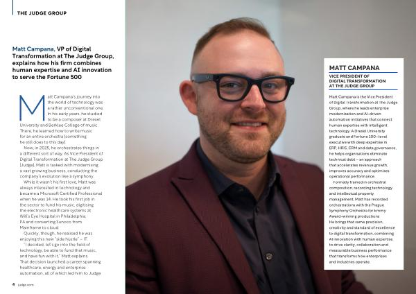 Now, in 2025, he orchestrates things in a different sort of way. As Vice President of Digital Transformation at The Judge Group( Judge), Matt is tasked with modernising a vast growing business, conducting the company’ s evolution like a symphony.