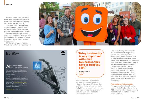Partnerships and future outlook To support its AI initiatives , Thryv has partnered with Tata Consultancy Services ( TCS ), which has helped it create working models for its AI needs beyond mere proof of concept . thryv . com 13