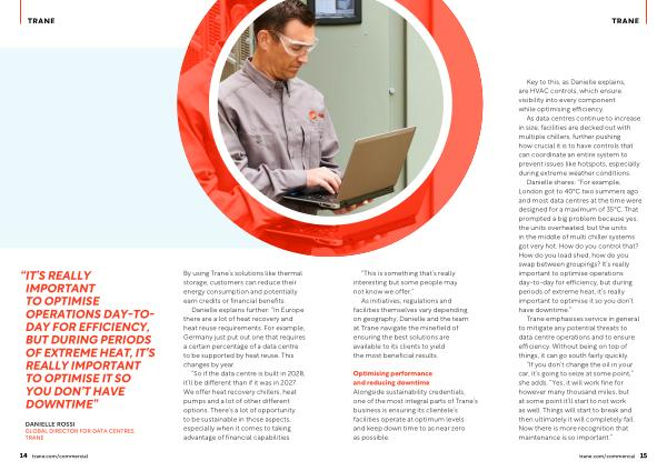 Danielle shares : “ For example , London got to 40 ° C two summers ago and most data centres at the time were designed for a maximum of 35 ° C . That prompted a big problem because yes , the units overheated , but the units in the middle of multi chiller systems got very hot . How do you control that ? How do you load shed , how do you swap between groupings ? It ’ s really important to optimise operations day-to-day for efficiency , but during periods of extreme heat , it ’ s really important to optimise it so you don ’ t have downtime .”