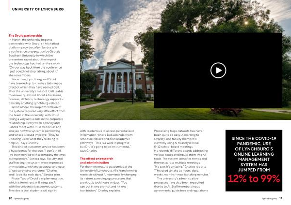 Since then, Lynchburg and Druid have teamed up to create a tailormade chatbot which they have named Dell, after the university’ s mascot. Dell is able to answer questions about admissions, courses, athletics, technology support – basically anything Lynchburg-related.