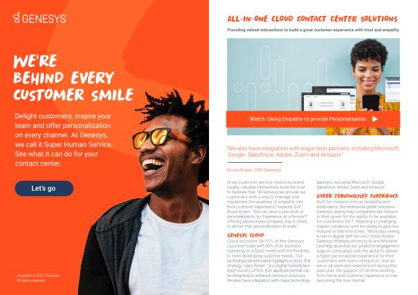 Great customer service improves brand loyalty ; valuable interactions build the trust to facilitate that . “ At Genesys we provide our customers with a way to manage and implement the qualities of empathy into their customer experience ,” explains SVP Bruce Rosen . “ We can drive a new level of personalization ; our Experience As a Service SM offering allows every company , big or small , to deliver that personalization at scale .”