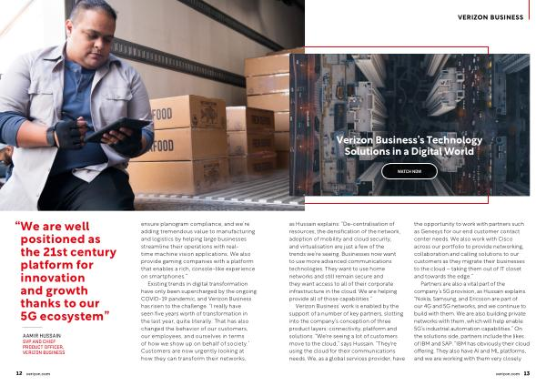 Verizon Business ’ work is enabled by the support of a number of key partners , slotting into the company ’ s conception of three product layers : connectivity , platform and solutions . “ We ' re seeing a lot of customers move to the cloud ,” says Hussain . “ They ' re using the cloud for their communications needs . We , as a global services provider , have the opportunity to work with partners such as Genesys for our end customer contact center needs . We also work with Cisco across our portfolio to provide networking , collaboration and calling solutions to our customers as they migrate their businesses to the cloud – taking them out of IT closet and towards the edge .”