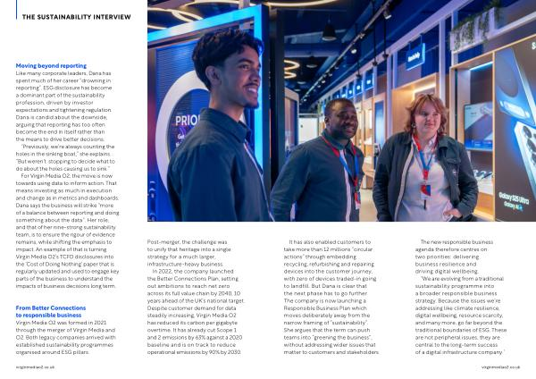 It has also enabled customers to take more than 12 millions“ circular actions” through embedding recycling, refurbishing and repairing devices into the customer journey, with zero of devices traded-in going to landfill. But Dana is clear that the next phase has to go further. The company is now launching a Responsible Business Plan which moves deliberately away from the narrow framing of“ sustainability”. She argues that the term can push teams into“ greening the business”, without addressing wider issues that matter to customers and stakeholders.