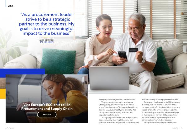 To support Visa Europe in its ESG initiatives , the Procurement team has entered into a partnership with EcoVadis to help assess their supply chain . The aim is to provide a better understanding of suppliers : who they engage in their business from an ESG perspective , and how Visa can together improve the communities in which they operate .