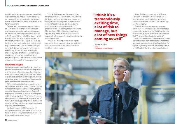 Smarter data analytics Vodafone uses a wealth of smart tools to provide unprecedented visibility , transparency and increased efficiencies based on data , but what if you could take that to the next level with predictive analytics ? Having that historical database helps to look ahead to potential problems or to reduce inefficiencies .