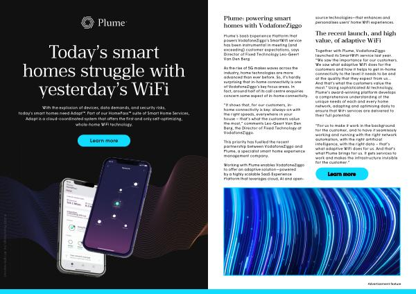 Together with Plume , VodafoneZiggo launched its SmartWiFi service last year . “ We saw the importance for our customers . We saw what adaptive WiFi does for the customers and how it helps to get in-home connectivity to the level it needs to be and at the quality that they expect from us … And that ’ s what the customers value the most .” Using sophisticated AI technology , Plume ’ s award-winning platform develops a comprehensive understanding of the unique needs of each and every home network , adapting and optimising daily to ensure that WiFi services are delivered to their full potential .