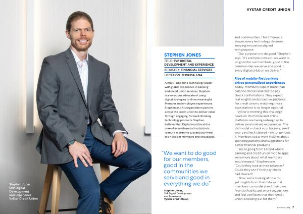 Stephen Jones, SVP Digital Development and Experience, VyStar Credit Union and communities. This difference shapes every technology decision, keeping innovation aligned with purpose.